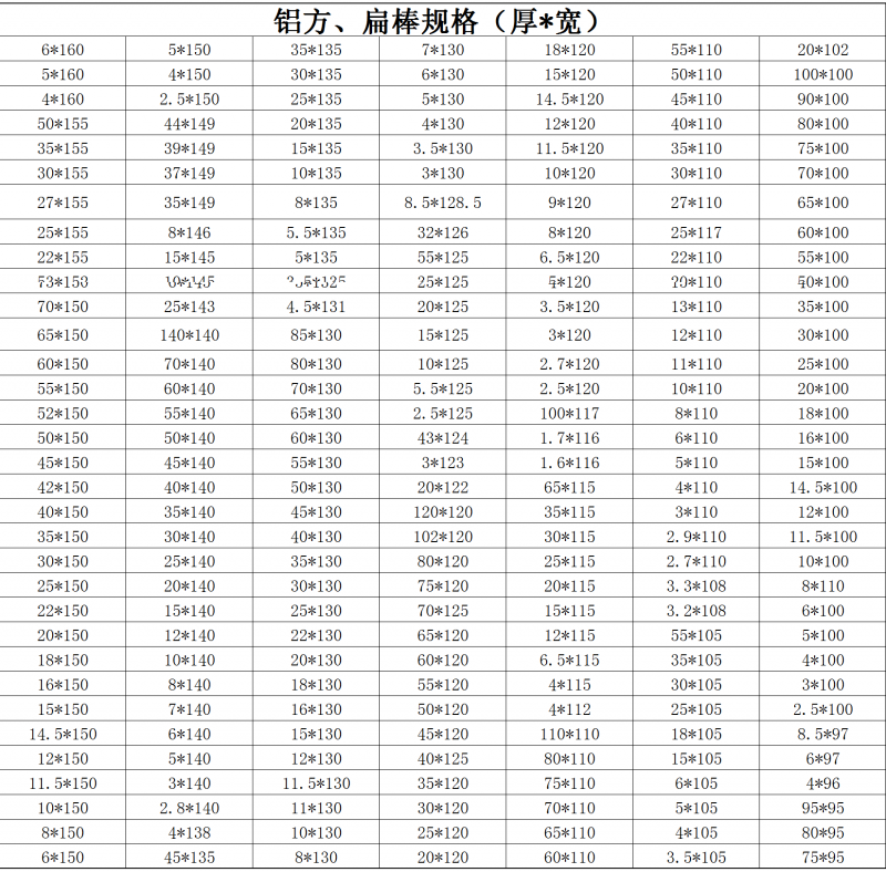 鋁方、扁棒規(guī)格