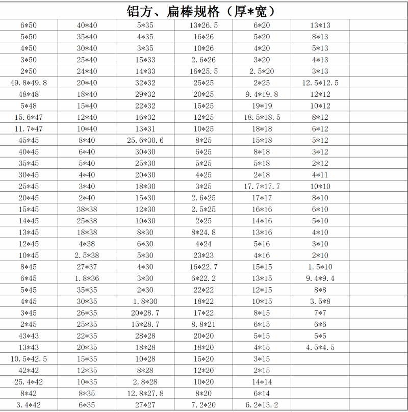 鋁方、扁棒規(guī)格